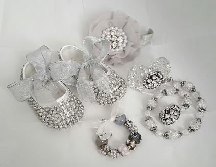 Specializing in Custom Order Baby Bling Baby Bracelets, Bling Pacifier with Clip, Bling Bottles, Bling Shoes / Booties, Bling Headbands and more.